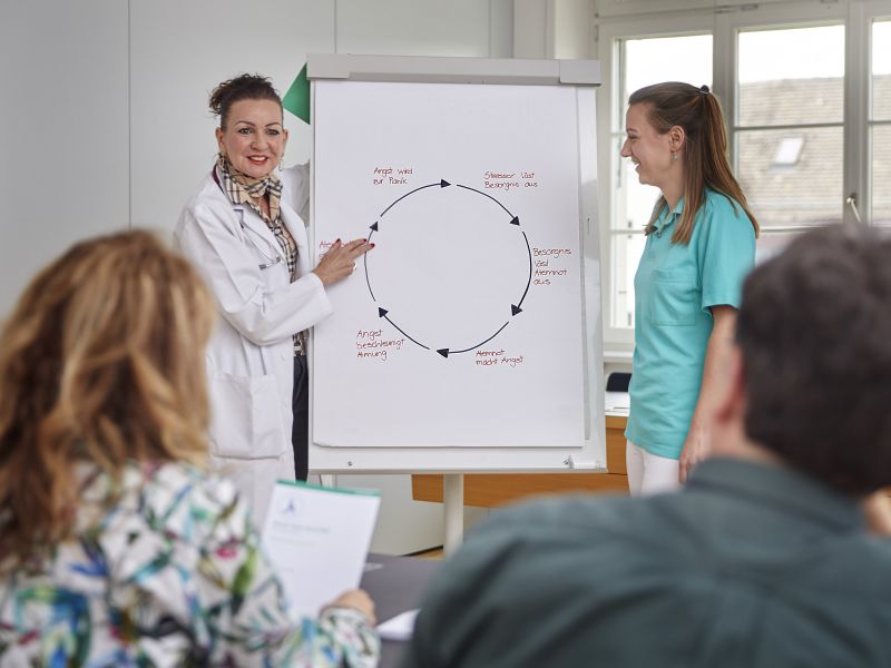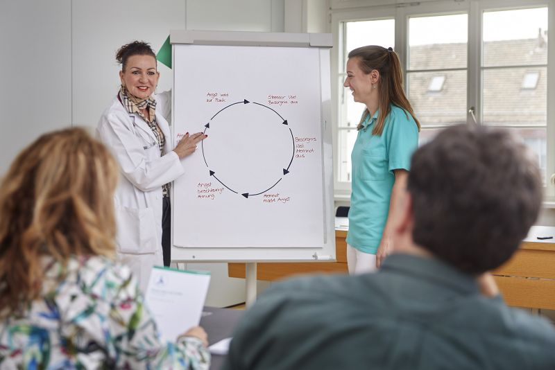 Nebst den sechs interaktiven Gruppenmodulen sind die beiden persönlichen Gespräche mit der ärztlichen Programmleiterin sowie der Lungenphysiotherapeutin zu Beginn des Programms wichtige Grundbausteine für den Aufbau des Vertrauensverhältnisses. Mit jedem Teilnehmenden werden im Verlauf der Schulung in mindestens einer individuellen Sitzung die Massnahmen zur persönlichen Zielerreichung besprochen und relevante Fertigkeiten wie auch das richtige Verhalten und das korrekte Handeln bei einer Verschlechterung der COPD, anhand des persönlichen von ärztlicher Seite verordneten Aktionsplanes, überprüft und geübt.